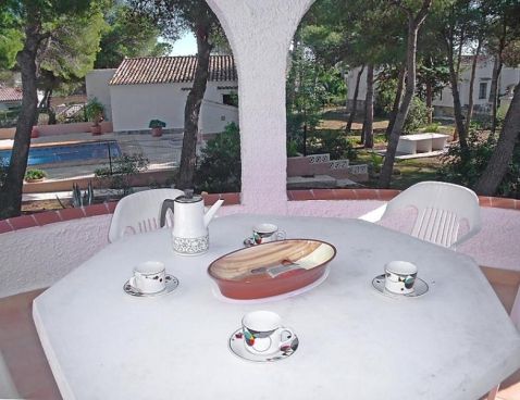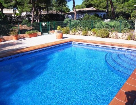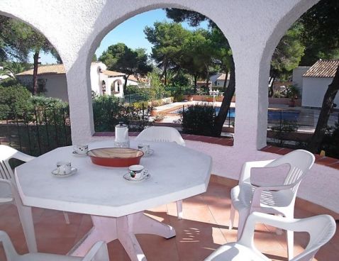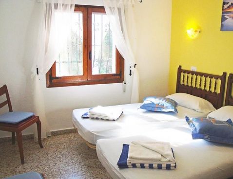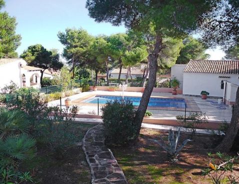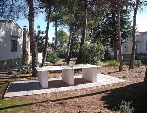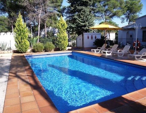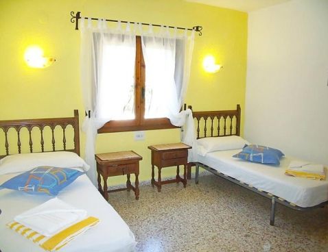 3-room house 60 m2. Practical furnishings: living/dining room with open-hearth fireplace and satellite TV. Exit to the terrace. 2 rooms, each room with 2 beds. Kitchen (oven, X ceramic glass hob hotplates, microwave, freezer). Shower/WC. Terrace 14 m2. Terrace furniture, deck chairs. Facilities: washing machine. Reserved parking. AT441059A Included: Available on site with supplement: Buggy, Cot, Highchair, Internet mobile 3G USB, Extra bed Mandatory extra services on site: Final cleaning 20.6 EUR per person, Laundry (initial supply of bed linen and towels) 13.0 EUR per person\n\nResort "Balcon al Mar 79-A". 8 houses in the residence. In the district of Balcón al Mar, in a quiet, sunny position in the residential district, 5 km from the sea. For shared use: trees, natural garden 8'000 m2, 2 swimming pools fenced (5 x 10 m, 01.01.-31.12.) with internal staircase. Outdoor shower, table tennis, barbecue, children's playground. Supermarket 1.2 km, restaurant 600 m, sandy beach "Arenal" 12 km, shingle beach "Granadella" 5 km. Tennis 1.2 km. Please note: suitable for families. Holiday resort Brisamar is composed of 2 groups of 4 houses. Each with a communal pool.