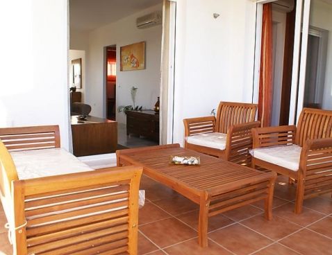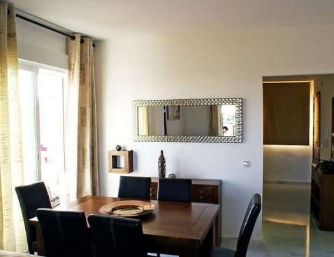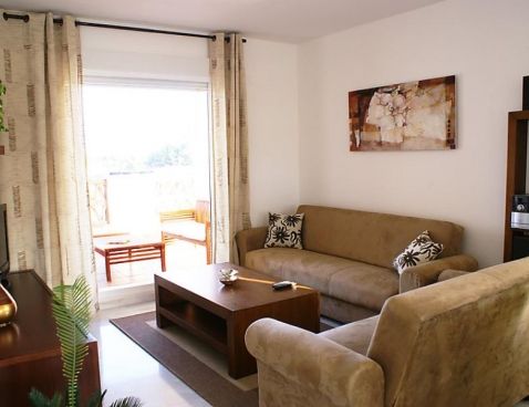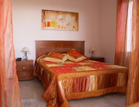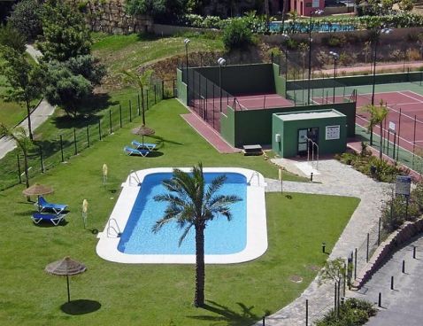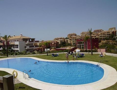 3-room apartment 97 m2: living/dining room with 1 double sofabed, satellite TV and DVD. Exit to the terrace. 1 room with 1 double bed and bath/bidet/WC (private). 1 room with 2 beds. Kitchen (oven, 4 ceramic glass hob hotplates, microwave, freezer). Shower/WC. Electric heating, air-conditioning, boiler (100 litres). Terrace 30 m2. Terrace furniture. View of the sea and the mountains. Facilities: washing machine. Please note: 1 pet/ dog allowed. Included: Pet, Final cleaning, Laundry (initial supply of bed linen and towels) \n\nRiviera del sol: Modern, comfortable apartment block "Islas de Riviera Golf 01", built in 2008. 800 m from the centre of Riviera del sol, 17 km from the centre of Marbella, outside the resort, 12 km from the centre of Fuengirola, in a sunny, elevated position, 1.5 km from the sea, in a cul-de-sac, on the golf course. For shared use: property (fenced), garden, swimming pool (15 x 10 m, 01.01.-31.12.). Shower/WC in the pool area, children's pool, tennis, floodlit. In the complex: lift. Communal covered parking. Shop 800 m, supermarket 1.8 km, sandy beach "Cabopino" 5 km, shingle beach 1.5 km. Sports harbour 5 km, golf course 200 m.