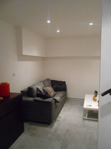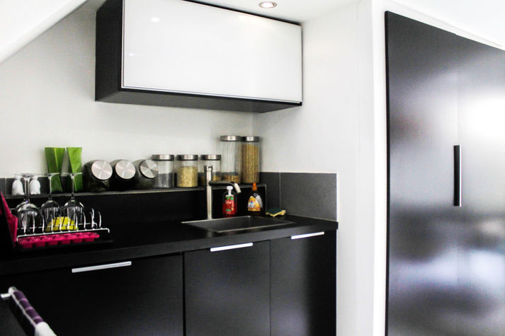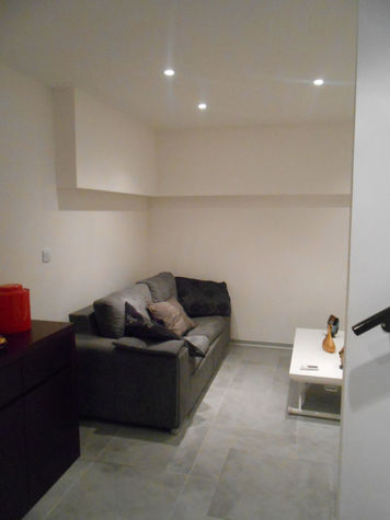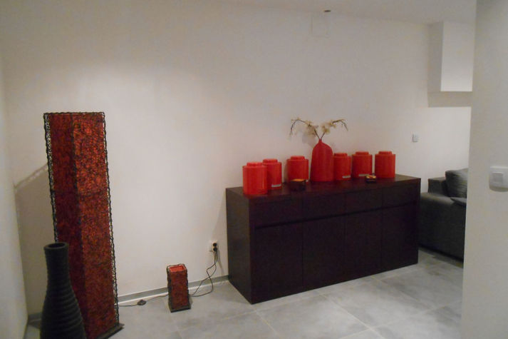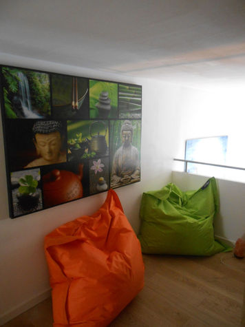 Inside the modern flat, a large living room with a choice of guides, novels and magazines