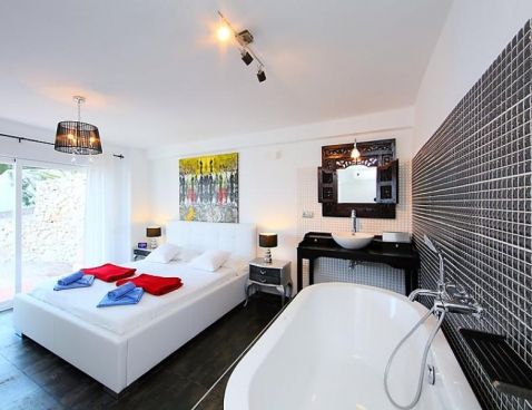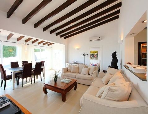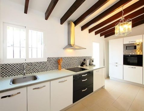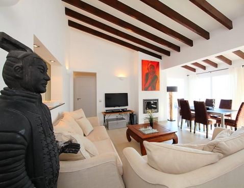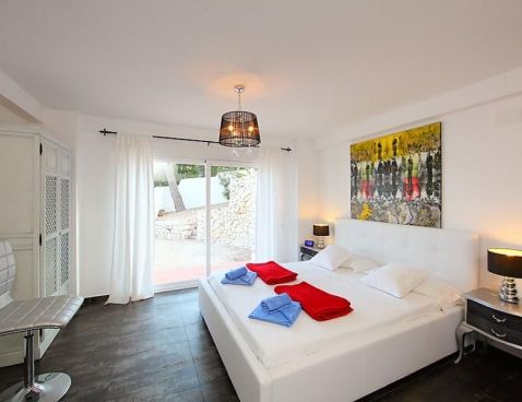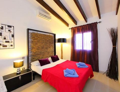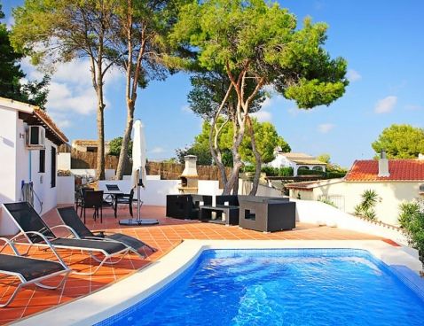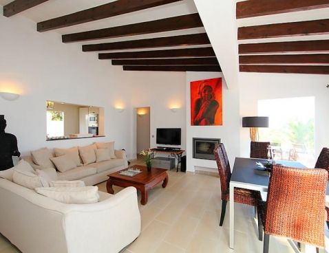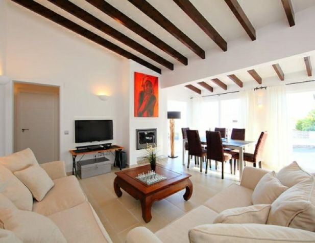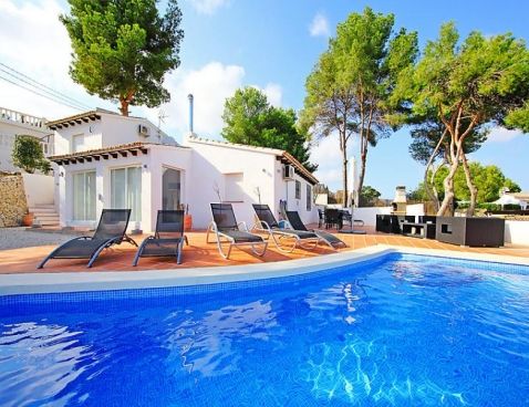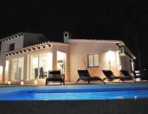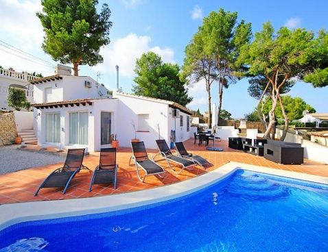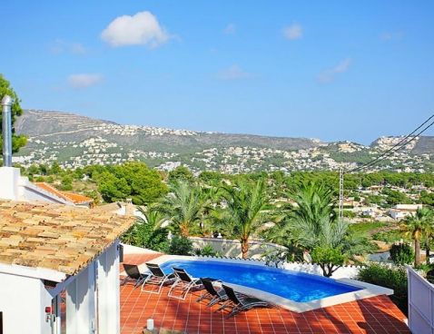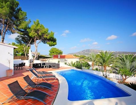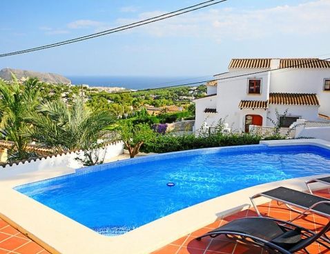 "Los Pajaros", 4-room house 150 m2. Bright, very comfortable and beautiful furnishings: living/dining room with open-hearth fireplace, satellite TV, flat screen, CD-player, DVD and air conditioning. Exit to the garden, to the terrace, to the swimming pool. 1 room, without wardrobe with 2 beds and air conditioning. 1 room with 1 double bed and air conditioning. 1 room with 1 double bed, bath/WC and air conditioning. Exit to the terrace. Open kitchen (oven, dishwasher, X ceramic glass hob hotplates, microwave, freezer, electric coffee machine). Exit to the terrace. Shower/WC, hydro massage shower. Terrace furniture, barbecue, deck chairs. Very beautiful panoramic view of the sea, the mountains, the countryside and the resort. Facilities: washing machine, dryer. Internet (WiFi, free). AT-440978-A Included: Available on site with supplement: Buggy, Cot, Highchair, Internet mobile 3G USB, Extra bed Mandatory extra services on site: Final cleaning 26.2 EUR per person, Laundry (initial supply of bed linen and towels) 13.0 EUR per person\n\nVery modern, beautiful, comfortable villa "Los Pajaros". In the district of Moraira, in a quiet, sunny, elevated position, 3 km from the sea, 3 km from the beach. Private: large, beautiful, well-kept garden, swimming pool angular (4 x 8 m, 01.01.-31.12.) with internal staircase. Linen change weekly. Room cleaning weekly on request (extra). Pre-arrival grocery service. Parking (for 2 cars). Shop 1 km, restaurant 1 km, bar 1 km, sandy beach "Playa L'Ampolla" 3 km.