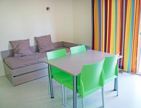 Mandatory extra services on site: Local tax 0.8 EUR per person/day\n\nRichelieu: In the heart of the Loire Castle Valley, located in a woody and pedestrian 5 hectare park. Wooden cottages divided into apartments, nature and ecology friendly cosy residence "Le Relais du Plessis", surrounded by trees. 144 apartments in the residence. In the resort, 100 m from the edge of the forest, in the countryside, in a pedestrian area. For shared use: property, park 5 ha (fenced), plants and trees, swimming pool heated, fenced (17 x 8 m, depth 150 - 150 cm, 30.04.-15.10. pool opening hours: 09:00-20:00) with internal staircase. Children's pool, outdoor shower, boccia, children's playground (slide, swing). In the complex: reception, restaurant, bar, breakfast room, lounge with TV, internet access, sauna, massage, steam room, whirlpool (all extra), spa area for shared use (extra), laundry, washing machine, tumble dryer (for shared use, extra). Breakfast. Parking on the premises. Central parking spaces. Shop 600 m, supermarket 800 m, restaurant 3 km, 15 minute walk to the centre. Please note: car-free holiday complex, car recommended. Suitable for families, baby equipment on request (extra). Loading and unloading of baggage is possible at the holiday house. Residence with electric gates. The photograph shows a typical example. The catalogue photo is just an example. There are more similar properties for rent in this same residence. Treatments (extra): 320 m2 Spa (saunas, jacuzzi, massage parlour), balneotherapy, phytotherapy, beauty treatments. Beds made up on arrival. Children entertainment available in summer. Baby kit (cot, baby bath and high chair) available on request at 25€ to pay locally.
