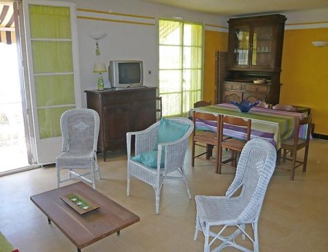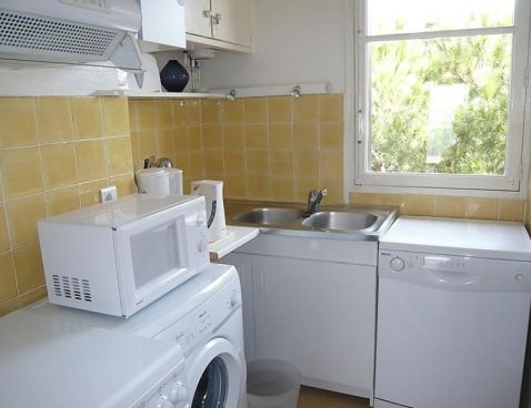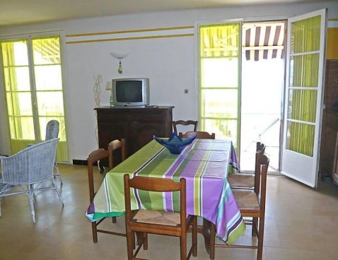 4-room apartment 75 m2 on 3rd floor. Practical furnishings: living/dining room with dining table, TV, CD-player and DVD. Exit to the terrace. 1 room with 1 french bed (140 cm, length 190 cm). 1 room with 1 x 3 bunk beds (80 cm, length 190 cm). 1 room with 1 french bed (140 cm, length 190 cm), shower/WC. Kitchen (4 hot plates, oven, dishwasher, microwave, freezer). Shower, sep. WC. Terrace 6 m2, south-west facing position. Terrace furniture. Marvellous panoramic view of the sea. Facilities: washing machine. Reserved parking, width 208 cm. Please note: parking space for small car only. Maximum 1 small pet/ dog allowed. TV only FR. Included: Parking, Small pet, Local tax children 3-12 years Available on site with supplement: Towels (initial supply) 6.0EUR per person, Bed linen (initial supply) 10.0EUR per person, WIFI (3G wireless modem for max. 5 connecting devices – LIMIT 1 GB per week) 24.0EUR per week, Booster seat (for children) 3.0EUR per day, Extra bed 6.0EUR per week, Cot (up to 2 years) 3.0EUR per day, Buggy 3.0EUR per day Mandatory extra services on site: Local tax 0.83EUR per person/day, Local tax babies (0-2) (per person/day), Local tax children (per person/day), Final cleaning 18.0EUR per person \n\n LES LECQUES 2 km from SAINT CYR SUR MER: Small residence "La Mer", 3 storeys. 50 m from the sea. Shop, grocery 100 m, supermarket 1.2 km, restaurant, café 30 m, railway station "Saint Cyr Sur Mer" 2 km, sandy beach 50 m. Golf course (18 hole) 5 km. Nearby attractions: Aqualand 2 km. Hiking paths: Sainte Beaume, Sainte Victoire, Calanques de Port-Cros, Porquerolles. Residence with electric gates. The keys‘ handover takes place by the agency Interhome in SaintCyr La Madrague, 2 km.