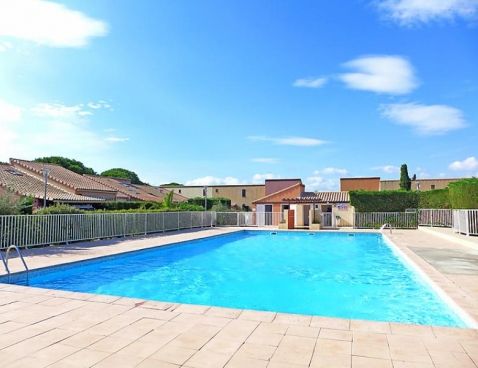 Mandatory extra services on site: Final cleaning 11.0 EUR per person\n\nResidence "Les Amandines". In the resort, 1 km from the centre, 2 km from the sea. For shared use: swimming pool (9 x 19 m, depth 100 - 200 cm, 01.06.-30.09.). Parking. Shop 100 m, supermarket 500 m, restaurant, bar 100 m, sandy beach "du Grazel", public bathing area 200 m. Tennis 800 m. Nearby attractions: Réserve Africaine de Sigean 29 km. Please note: the photograph shows a typical example. Fenced swimming pool.