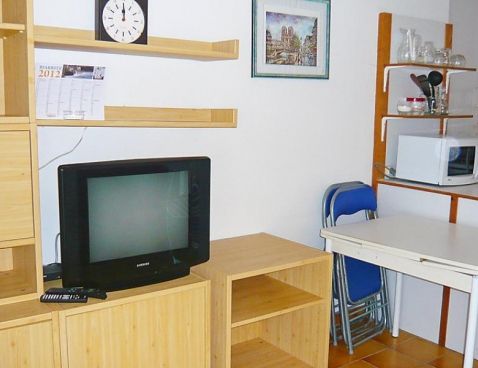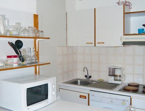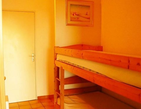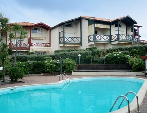 2-room apartment 34 m2, on the ground floor. Living/dining room with TV. Alcove with 1 x 2 bunk beds. 1 room with 1 double bed. Kitchenette (4 hot plates, 4 ceramic glass hob hotplates, microwave, freezer, electric coffee machine). Bathroom, sep. WC. Electric heating. Terrace. Terrace furniture. View of the sea. Facilities: washing machine, iron. Please note: parking in the street. Included: Local tax children 3-12 years Available on site with supplement: Booster seat (for children), Buggy, Bed linen (initial supply), Cot (up to 2 years), Towels (initial supply), WIFI (3G wireless modem for max. 5 connecting devices – LIMIT 1 GB per week) Mandatory extra services on site: Final cleaning 30.0 EUR per person, Local tax 0.5 EUR per person/day\n\nBiarritz: Residence "Milady Village". In the district of Milady, in the resort 3 km from the centre of Biarritz, 600 m from the sea, 600 m from the beach. For shared use: garden (fenced), swimming pool (7 x 5 m, 01.06.-30.09.). Shop 2.5 km, grocery 1.4 km, restaurant 250 m, bar 1.4 km, bakery 1.4 km, bus stop 50 m, railway station "Biarritz" 2 km, sandy beach "Milady à pied" 150 m, thermal baths "thalasso" 200 m. Golf course (9 hole) 1 km, riding stable 1 km, sports centre 200 m, children's playground 150 m. Please note: the photograph shows a typical example. There are more similar properties for rent in this same residence. Water therapy centre 250 m. Golf course 850 m. Private parking no 83. Transit road (connecting Biarritz/St-Jean-de-Luz) 50m.