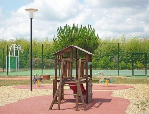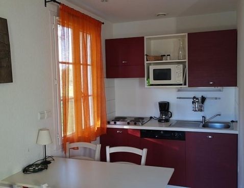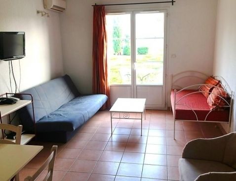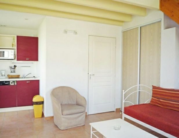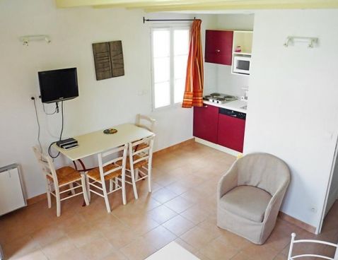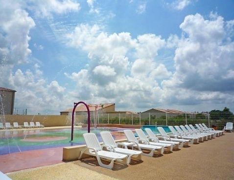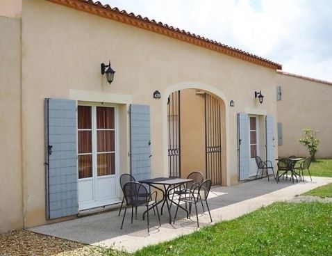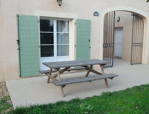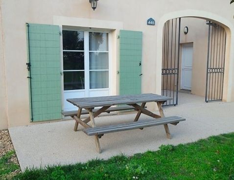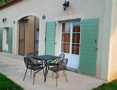 3-room terraced house 45 m2. Living/dining room with TV (flat screen). Exit to the terrace. Open kitchen (4 hot plates, dishwasher, microwave). Bathroom, sep. WC. Air-conditioning. Upper floor: 1 room with 1 french bed. 1 room with 2 sleeping facilities. Small terrace. Terrace furniture. Facilities: Internet (WiFi, free). Maximum 1 pet/ dog allowed. Included: Final cleaning, Wireless internet access (WIFI) Available on site with supplement: Breakfast 9.8EUR per person/day, Pet 5.0EUR per day Mandatory extra services on site: Towels (initial supply) 5.0EUR per person, Bed linen (initial supply) 10.0EUR per person, Local tax 1.0EUR per person/day \n\nGallargues le Montueux 30 km from Montpellier: Residence "Les Jasses de Camargue". 260 houses in the resort. On the outskirts, 1 km from the centre, 15 km from the sea, 15 km from the beach, in the countryside, in a pedestrian area. For shared use: property 8 ha (fenced) with lawn and trees, swimming pool (14 x 10 m, 01.05.-30.09.). Tennis, boccia, children's playground. In the complex: reception, restaurant, bar, sauna, steam room, whirlpool (all extra), billiard table, washing machine, tumble dryer (for shared use, extra). Parking on the premises. Grocery, restaurant, bar 10 m, sandy beach "l'Espiguette" 15 km, indoor swimming pool 10 m. Tennis, minigolf 10 m. Nearby attractions: Nîmes, ville romaine 25 km, Aigues-Mortes, cité médiévale 20 km, Grau du Roi 25 km, Château ducal d'Uzès 50 km. Please note: car-free holiday complex. Entertainment in the season. Suitable for families. The photograph shows a typical example. There are more similar properties for rent in this same residence.