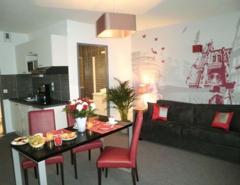 Sleeps up to 4, approx. 33-36m², living area sleeps 2, bedroom sleeping 2. Kitchenette with ceramic hob, microwave and dishwasher, air-conditioning, internet access, TV (may only have French channels), bathroom.\n\n LA RESIDENCE The STRASBOURG CITY aparthotel is located in Strasbourg's city centre, and is 5 minutes walk from the train station annd the tramway. The residence is 15 minutes from the 16th century "Petite France" area of the city, famed for its quaint narrow streets and half-timbered houses, and is 20 minutes walk from Strasbourg's impressive gothic cathedral (the second tallest in France after Rouen). This 7 storey residence (with lift) is made up of 98 apartments, and the high-standard accommodation and ideal location make the Lagrange City apartments a great option for anyone looking for accommodation in Strasbourg. For more information on this property, or on other properties available, call our UK reservations team. FREE OF CHARGE Indoor heated swimming pool Fitness room Left-luggage facility Beds made on arrival and towels provided End of stay cleaning (excluding kitchenette) WiFi access in apartments PAYABLE SERVICES Sauna and steam room: 8 euros/30 minute session/apartment Breakfast room: breakfast - 9 euros/adult, 5 euros/child aged 3-10 years Mid-stay cleaning on request (excluding washing up and cleaning of kitchenette) - 25 to 50 euros Laundry room Cleaning kit - 5 euros Cot or high chair hire for children under 2 years 5 euros/day, 15 euros/stay each; baby kit hire (cot and high chair) 7 euros/day, 25 euros/stay (all subject to availability, state at time of booking and pay locally) PRACTICAL INFORMATION State at time of booking and pay locally when required Underground parking 10 euros/night; 60 euros/week (subject to availability) TV free of charge (may only have French channels) Pets 7 euros/pet/night (2 max./apartment) CE PRIX COMPREND ET NE COMPREND PAS PRICES DO NOT INCLUDE: Security deposit (credit card imprint, exact amount subject to length of stay), local tourist tax. LOCATION With its gothic cathedral and historic old town existing along side more modern EU institutions, Strasbourg is one of Europe's most beautiful and interesting cities. Thanks to this richness of heritage and culture, the heart of Strasbourg has been classed as a UNESCO world heritage site and it is easy to see why. Strasbourg's status as the "capital of Europe" has given the city a fresh importance and the new, contemporary architecture of the European Parliament and the European Court of Human Rights compliment the city's historic churches and pituresque 16th century districts teaming with wateways and quaint half-timbered houses. OTHER ACTIVITIES Strasbourg is a city with a rich and varied culture, offering a wide range of museums and art galleries for culture vultures to explore, as well as scenic parks and gardens for anyone who prefers to simply soak up the atmosphere. Visitors can also tour the European Parliament, the gothic Notre-Dame Cathederal and the narrow streets of the Petite France area of the city. For anyone who enjoys a more relaxed approach to sightseeing, boat tours of Strasbourg can be pre-booked through the Tourist Office. The city also has a great range of cafes, bars, restaurants and shops to suit all budgets. PRACTICAL INFORMATION The Lagrange City apartments are located just 5 minutes walk from Strasbourg train station, so travelling to the property by train is an easy and environmentally-friendly option. Lagrange can create accommodation and rail travel packages, as well as great value self-drive packages for anyone who may be hoping to use the Lagrange City residence as a base to explore the Alsace region. All information provided here is intended for guidance only. For more detailed, up to date information, please contact local tourist information services.