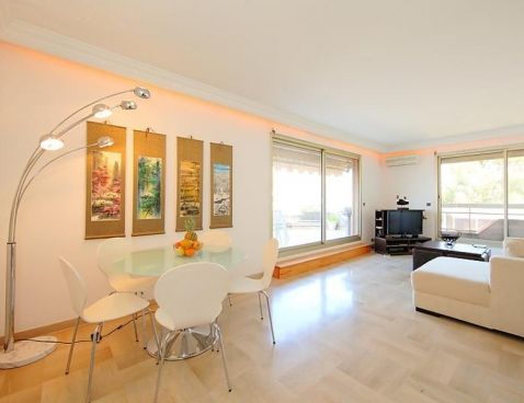 3-room apartment 84 m2 on 4th floor: living/dining room with TV. Exit to the terrace. 1 room with 1 double bed (160 cm). 1 room with 2 beds (90 cm). Exit to the terrace. Kitchen (3 hot plates, oven, dishwasher, microwave). Exit to the terrace. Bath/WC, shower, sep. WC. Air-conditioning. Terrace 30 m2. Terrace furniture. Garage, height 200 cm, width 150 cm. Included: Garage 1x, Local tax children 3-12 years Available on site with supplement: Booster seat (for children), Buggy, Bed linen (initial supply), Cot (up to 2 years), Highchair, Towels (initial supply), WIFI (3G wireless modem for max. 5 connecting devices – LIMIT 1 GB per week) Mandatory extra services on site: Final cleaning 32.2 EUR per person, Local tax 1.0 EUR per person/day\n\nResidence "Château Miramar". In the resort, 1.5 km from the centre, 500 m from the sea, 500 m from the beach. For shared use: swimming pool (01.06.-30.09.). Shop, restaurant 500 m. Golf course (18 hole) 19 km.