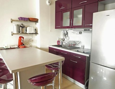 "Blue Bay", 2-room apartment 38 m2 on 1st floor. Entrance hall. Living/dining room with 1 double sofabed (140 cm), TV (flat screen). 1 room with 1 x 2 bunk beds (90 cm). Open kitchen (2 hot plates, dishwasher, freezer, combination microwave). Shower, sep. WC. Electric heating. Terrace 12 m2, south facing position. Terrace furniture. Beautiful view of the port. Facilities: washing machine. Internet (WiFi). Reserved parking.