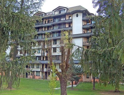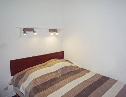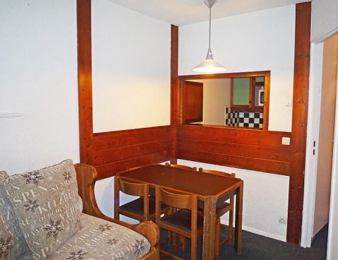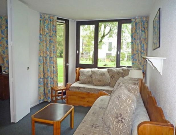 2-room apartment 31 m2, on the ground floor. Living/dining room with 2 beds and TV (flat screen). Exit to the terrace. 1 room with 1 french bed. Kitchenette (4 hot plates, oven, dishwasher, microwave). Bathroom, sep. WC. Electric heating. Deck chairs. Beautiful view of the mountains. Please note: maximum 1 small pet/ dog allowed. TV only FR. Included: Small pet, Local tax children 3-12 years Available on site with supplement: Towels (initial supply) 6.0EUR per person, Ski rental adult 6 days "Alpin bleu" (skis and shoes) 60.0EUR fixed price, Bed linen (initial supply) 14.0EUR per person, Ski rental adult 6 days "Alpin noir" (skis and shoes) 96.0EUR fixed price, Highchair 3.0EUR per day, Buggy 3.0EUR per day, Ski rental adult 6 days "Alpin rouge" (skis and shoes) 84.0EUR fixed price, Ski rental 7-11 years 6 days (skis and shoes) 72.0EUR fixed price, Ski rental Kid 2-6 years 6 days (skis and shoes) 30.0EUR fixed price, Booster seat (for children) 3.0EUR per day, WIFI (3G wireless modem for max. 5 connecting devices – LIMIT 1 GB per week) 24.0EUR per week, Cot (up to 2 years) 3.0EUR per day, Extra bed 6.0EUR per day Mandatory extra services on site: Final cleaning 14.0EUR per person, Local tax babies (0-2) (per person/day), Local tax children (per person/day), Final cleaning 13.0EUR per person, Local tax 1.0EUR per person/day, Local tax 0.75EUR per person/day \n\n Residence "Le Chamois Blanc", 7 storeys. 600 m from the centre, in a busy position. In the complex: lift, storage room for skis. Public parking on the road. Shop 100 m, shopping centre 600 m, restaurant 100 m, bus stop 50 m, railway station 800 m. Golf course (18 hole) 4 km, sports centre 1 km, cable car 1 km, cross country ski track 1 km. Please note: ski bus (free of charge). The photograph shows a typical example. There are more similar properties for rent in this same residence.