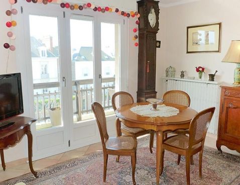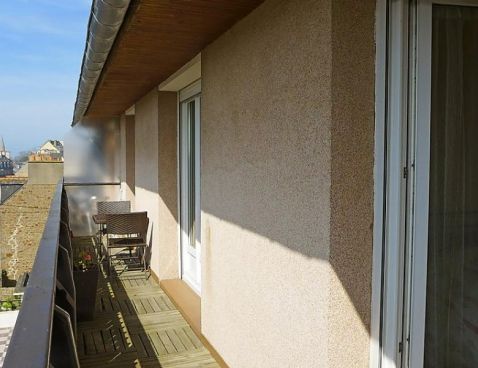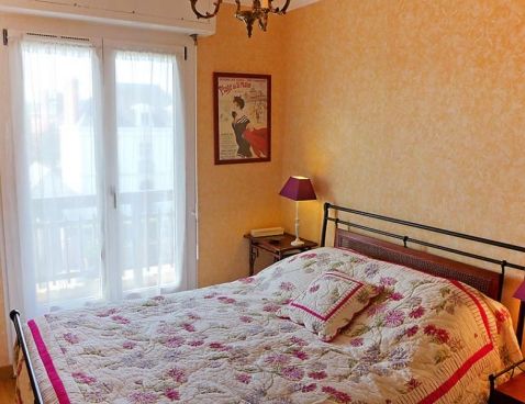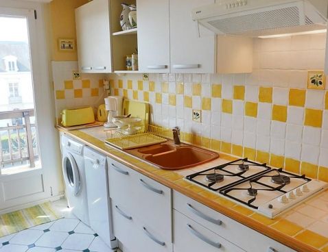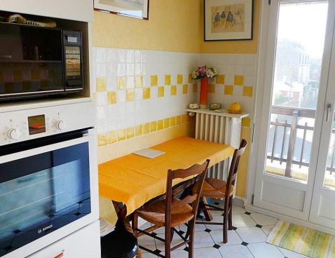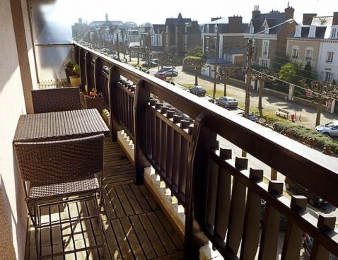 2-room apartment 48 m2 on 3rd floor. Living/dining room with 1 double sofabed (1 x 140 cm, length 190 cm), TV (flat screen). Exit to the balcony. 1 room with 1 french bed (1 x 140 cm, length 190 cm). Exit to the balcony. Kitchen (4 hot plates, oven, dishwasher, microwave, electric coffee machine). Bathroom, sep. WC. Gas heating. Small balcony 15 m2. Balcony furniture. Facilities: washing machine. Please note: apartment street side. Non-smokers only. No lift. The balcony furniture consists of a small table 2 chairs . Included: Pet Available on site with supplement: Towels (initial supply) 5.0EUR per person, Bed linen (initial supply) 10.0EUR per person, Booster seat (for children) 3.0EUR per day, Cot (up to 2 years) 3.0EUR per day, WIFI (3/4G wireless modem for max. 10 connecting devices – LIMIT 1 GB per day) 7.0EUR per day, Highchair 3.0EUR per day, Buggy 3.0EUR per day Mandatory extra services on site: Final cleaning 19.0EUR per person, Local tax 0.85EUR per person/day, Local tax babies (0-2) (per person/day), Local tax children (per person/day) \n\nApartment block "Cardella", 4 storeys. In the district of Saint Servan, 800 m from the sea. Public parking on the road. Shop, grocery, restaurant, bakery 300 m, sandy beach "Fours à chaux" 800 m, park "La Briantais" 800 m, diving center 2 km, outdoor swimming pool 2 km, indoor swimming pool 2 km, thermal baths "Les Thermes marins" 5 km. Surf school 5 km, sailing school 5 km, riding stable 800 m. Nearby attractions: Le mont St Michel 50 km, Dinan 30 km, Dinard 8 km, Cancale 20 km.