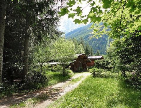 2-room chalet 36 m2. Living/dining room with 1 double sofabed and TV. 1 room with 1 french bed. Kitchenette (4 hot plates, oven, dishwasher, microwave, electric coffee machine). Shower/WC. Electric heating. Terrace furniture. Beautiful view of the mountains. Facilities: washing machine. Please note: non-smokers only. TV only FR. Included: Parking, Local tax children 3-12 years Available on site with supplement: Towels (initial supply) 6.0EUR per person, Ski rental adult 6 days "Alpin bleu" (skis and shoes) 60.0EUR fixed price, Bed linen (initial supply) 14.0EUR per person, Ski rental adult 6 days "Alpin noir" (skis and shoes) 96.0EUR fixed price, Highchair 3.0EUR per day, Buggy 3.0EUR per day, Ski rental adult 6 days "Alpin rouge" (skis and shoes) 84.0EUR fixed price, Ski rental 7-11 years 6 days (skis and shoes) 72.0EUR fixed price, Ski rental Kid 2-6 years 6 days (skis and shoes) 30.0EUR fixed price, Booster seat (for children) 3.0EUR per day, WIFI (3G wireless modem for max. 5 connecting devices – LIMIT 1 GB per week) 24.0EUR per week, Cot (up to 2 years) 3.0EUR per day, Extra bed 6.0EUR per day Mandatory extra services on site: Local tax babies (0-2) (per person/day), Local tax children (per person/day), Final cleaning 13.0EUR per person, Local tax 1.0EUR per person/day, Local tax 0.75EUR per person/day \n\n Small chalet "Simond", surrounded by trees. 2.7 km from the centre of Chamonix, in a quiet position. Private: garden 600 m2 (not fenced). Motor access to the house. Parking at the house on the premises. Shopping centre 2 km, restaurant 500 m, railway station "Les Praz de Chamonix" 500 m. Golf course (18 hole) 1 km, sports centre 2.2 km, slopes 800 m, cross country ski track 200 m, ice field 2.2 km. Please note: ski bus (free of charge). The owner lives on the same property.