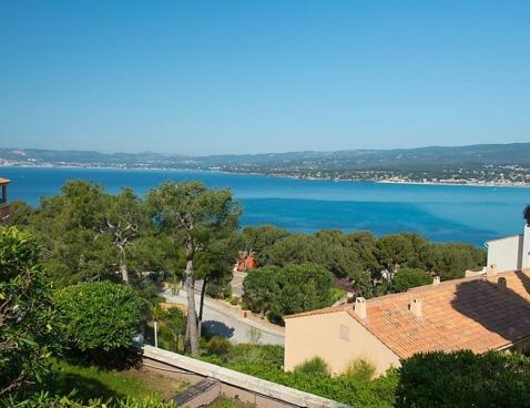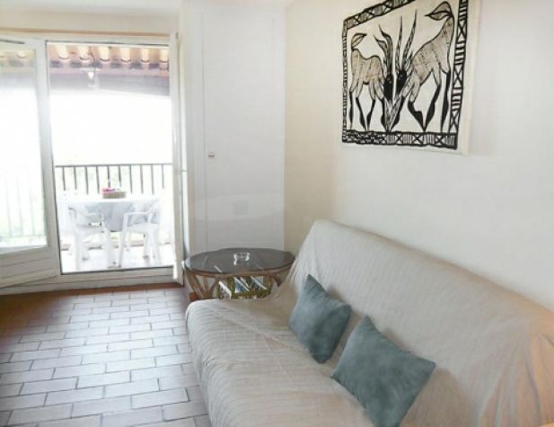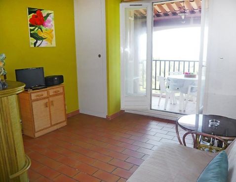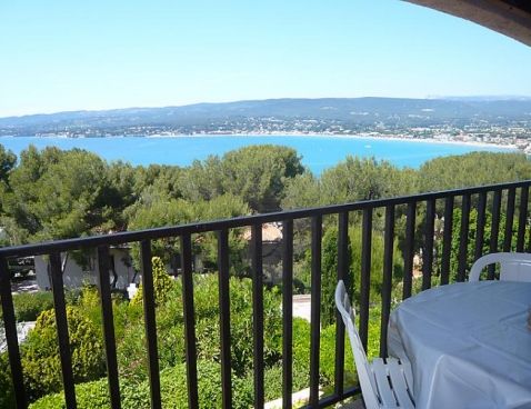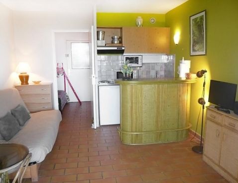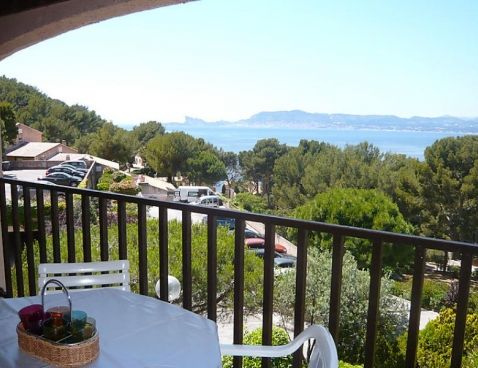 1-room apartment 23 m2 on 1st floor. Practical furnishings: living room with 1 sofabed (130 cm, length 190 cm), TV. Exit to the terrace. Entrance hall, without window with 1 x 2 bunk beds (80 cm, length 190 cm). Kitchenette (2 hot plates, mini-oven, microwave, electric coffee machine). Shower/WC. Electric heating. Terrace 7 m2, roofed. Terrace furniture, electric barbecue. Panoramic view of the sea. Please note: maximum 1 pet/ dog allowed. TV only FR. Included: Small pet, Local tax children 3-12 years Available on site with supplement: Towels (initial supply) 6.0EUR per person, Bed linen (initial supply) 10.0EUR per person, WIFI (3G wireless modem for max. 5 connecting devices – LIMIT 1 GB per week) 24.0EUR per week, Booster seat (for children) 3.0EUR per day, Extra bed 6.0EUR per week, Cot (up to 2 years) 3.0EUR per day, Buggy 3.0EUR per day Mandatory extra services on site: Local tax 0.83EUR per person/day, Final cleaning 14.0EUR per person, Local tax babies (0-2) (per person/day), Local tax children (per person/day) \n\n La Madrague 2 km from Saint Cyr Sur Mer: Residence "Mas de la Madrague", surrounded by trees. Above La Madrague, in a quiet, elevated position on top of a hill, 300 m from the sea, in a cul-de-sac. For shared use: swimming pool heated, fenced (16 x 6 m, 06.06.-17.10.). Tennis (extra), table tennis, boccia, volleyball, children's playground, parking (limited number of spaces), public parking on the road. Supermarket 2.5 km, restaurant 400 m, sandy beach 500 m, shingle beach 300 m. Golf course (18 hole) 3.5 km. Nearby attractions: Aqualand 3 km. Hiking paths: Sainte Beaume, Sainte Victoire, Parcs des Calanques, Port-Cros, Porquerolles. Please note: residence with electric gates. The keys‘ handover takes place by the agency Interhome in SaintCyr La Madrague, 2 km. The photograph shows a typical example. There are more similar properties for rent in this same residence. The grocery store is located on 100 meters and open from 1 May to 30 September.