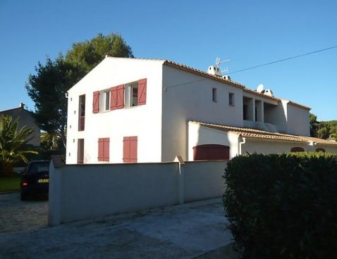 3-room apartment 60 m2, on the upper ground floor. Spacious and bright, comfortable and beautiful furnishings: living/dining room with panoramic window with 1 sofabed (140 cm, length 190 cm), TV. Exit to the terrace. 1 room with 2 beds (90 cm, length 190 cm). 1 room with 1 french bed (140 cm, length 190 cm). Kitchen (4 hot plates, oven, dishwasher, microwave, freezer) with dining table. Bathroom, sep. WC. Terrace 10 m2, roofed, south-west facing position, garden 250 m2. Terrace furniture. View of the garden. Facilities: washing machine, iron. Internet (WiFi). Included: Final cleaning, Parking, Small pet, Wireless internet access (WIFI), Local tax children 3-12 years Available on site with supplement: Laundry (initial supply of bed linen and towels) Mandatory extra services on site: Local tax 0.83EUR per person/day, Local tax babies (0-2) (per person/day), Local tax children (per person/day) \n\n This block is situated in the residence "Le Caylar" and has secured gates. Apartment block "Résidence Aubanel", surrounded by trees. In the resort 600 m from the centre of St Cyr Les Lecques, in a quiet position in the residential district, 300 m from the sea, in a cul-de-sac. Private: large, well-kept garden 250 m2 (fenced), parking. Shop 500 m, supermarket 1.5 km, restaurant 500 m, sandy beach 300 m. Marina 1 km, golf course (18 hole) 5 km. Nearby attractions: Aqualand 2 km. Hiking paths: Massifs Sainte Beaume et Sainte Victoire, Parcs naturels des Calanques, de Port, Cros, de Porquerolles et sites préservés. Please note: the photograph shows a typical example. There are more similar properties for rent in this same residence.