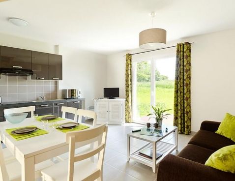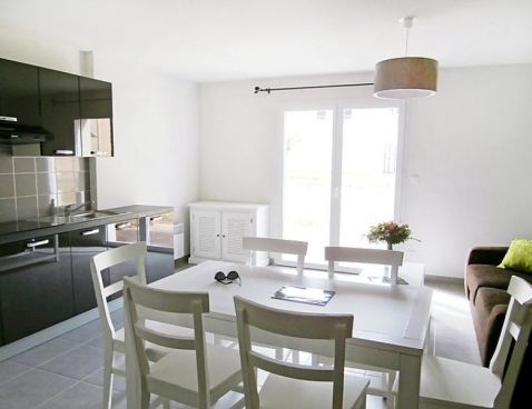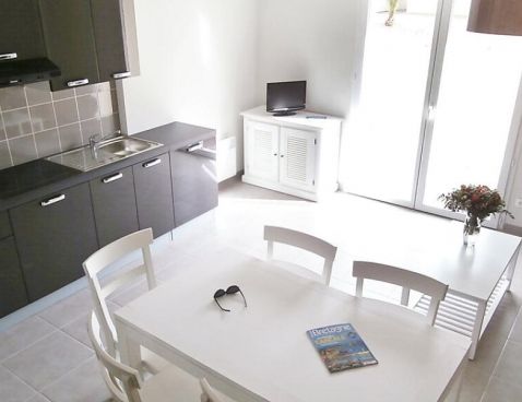 2-room apartment 34 m2. Living/dining room with 1 sofabed and dining nook. Exit to the garden. 1 room with 1 double bed. Kitchenette (dishwasher, 2 ceramic glass hob hotplates, microwave, grill, electric coffee machine). Bath/WC. Electric heating. Terrace furniture. Facilities: Internet (WiFi, extra).