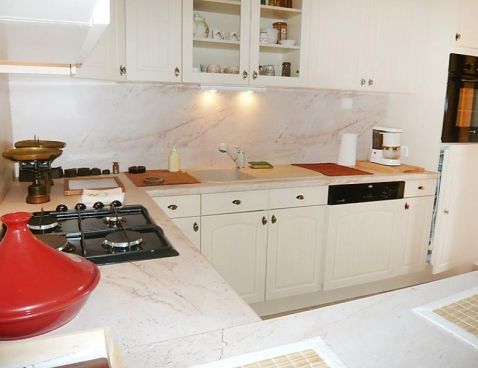 2-room apartment 35 m2, on the ground floor. Practical and comfortable furnishings: living/dining room with 1 sofabed (80 cm, length 200 cm), 1 double sofabed (160 cm, length 200 cm), TV (flat screen). Exit to the garden. 1 room with 1 french bed (140 cm, length 190 cm), hand-basin. Open kitchen (4 hot plates, oven, dishwasher, microwave, electric coffee machine) with dining table. Shower, sep. WC. Electric heating. Garden 20 m2. Terrace furniture, electric barbecue. Facilities: iron, baby cot for up to 2 year olds. Internet (WiFi). Reserved parking at the house. Please note: TV only FR. Do not smoke inside the property. Included: Cot (up to 2 years), Final cleaning, Extra bed, Wireless internet access (WIFI), Local tax children 3-12 years Available on site with supplement: Towels (initial supply) 6.0EUR per person, Bed linen (initial supply) 10.0EUR per person Mandatory extra services on site: Local tax 0.83EUR per person/day, Local tax babies (0-2) (per person/day), Local tax children (per person/day) \n\n La Madrague 2 km from Saint Cyr Village: Outside parking in the no-through road in front of the house. The grocers shops is situated 500 m away and is open from 1st May to 30th September. 2-family house "Le Pin d'Alep". 800 m from the sea, in a cul-de-sac. For shared use: garden (fenced). Private: natural garden 20 m2, parking at the house. Shop 600 m, shopping centre 2 km, restaurant 1.5 km, sandy beach 800 m. Golf course (18 hole) 4 km. Nearby attractions: Aqualand 3 km. Hiking paths: Massifs Sainte Beaume et Sainte Victoire, Parcs naturels des Calanques, de Port, Cros, de Porquerolles et sites préservés. Please note: car recommended. The owner lives on the same property.