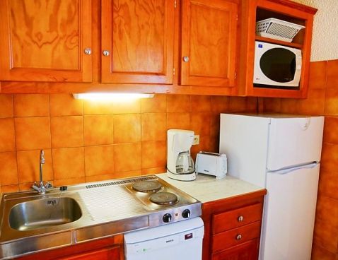 1-room studio 18 m2. Living/dining room with 1 pull-out bed (2 pers.). Kitchenette (2 hot plates, dishwasher, microwave, grill, electric coffee machine). Shower/WC. Balcony or terrace. Terrace furniture. Facilities: telephone, safe (extra), children's high chair, baby cot (extra). Internet (WiFi, free). Reserved parking. Suitable for families.