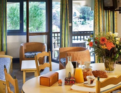 Mandatory extra services on site: Local tax 1.1 EUR per person/day\n\nAparthotel "Les Vallées", 4 storeys. In the centre of La Bresse, in the resort, 600 m from the centre, 8 km from the skiing area. For shared use: park with lawn, indoor pool heated. Tennis (extra), children's playground. In the complex: reception, restaurant, bar, WiFi, sauna, fitness room, whirlpool (all included), playroom, lift, storage room for skis. Newspaper delivery, breakfast and half board on request (extra). Motor access (mountain road). In Winter: please take snow chains. Parking (limited number of spaces) at the house, public parking. Shop, grocery 50 m, restaurant 100 m, bakery 50 m, 2 minute walk to the centre, railway station "Nancy-Epinal" 120 km. Tennis 100 m, chair lift 500 m, skisport facilities 7 km, slopes 7 km. Nearby attractions: Ecole de parapente, Col de la Schlucht, itinéraire VTT Enduro, Télésiège de Vologne Express, Colmar et Mulhouse 80 km, Nancy et strasbourg 120 km. Well-known ski regions can easily be reached: La Bresse 8 km. Well-known lakes can easily be reached: Gérardmer 15 km. Hiking paths: Parc Naturel du Ballon des Vosges, la route des vins d'Alsace. Please note: car recommended. Baby equipment on request (extra). In case of good snow conditions, the house is accessible on skis. The photograph shows a typical example. The catalogue photo is just an example. There are more similar properties for rent in this same residence. Jacuzzi for shared use.