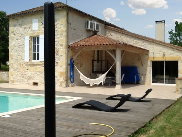 Experience the countryside charm of Monsempron-Libos and the lush region of Aquitaine from the comfort of this spacious and fully-equipped house, which sleeps 10 happy holidaymakers in total comfort. The kitchen boasts everything you need to prepare an appetising meal, from an oven to a microwave and a full set of utensils. Kick your day off with a freshly brewed cup of coffee, and have a quick clean-up using the dishwasher. After a day exploring the region’s sites or splashing around in the pool, sleep soundly in one of the the double beds found in all four bedrooms. One bedroom boasts an ensuite with a tub and the shared bathroom is fitted with a bathtub and a toilet. Mod cons included in this stunning house include a computer with free WiFi, air conditioning, a washing machine, a dryer and central heating. Watch your favourite show on the flat-screen TV, snuggle up in front of the fireplace with a good book or pop on some music. Take advantage of a warm day by relaxing in the swimming pool, have a barbecue and kick back on the outdoor furniture while taking in the garden view. You may even want to challenge your group to a game of table tennis or pétanque! Cleaning is included in total rent. You will need to bring your own linen and towels. Private, on-site parking is available, smoking is allowed only outdoors and pets are welcome upon request.