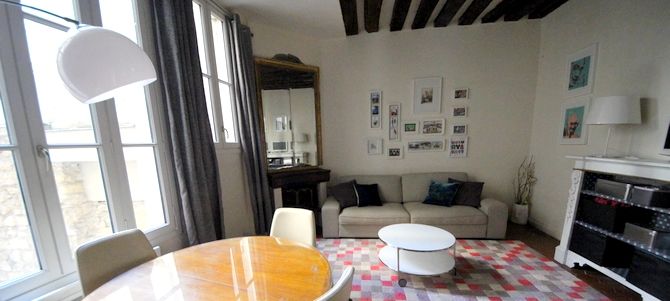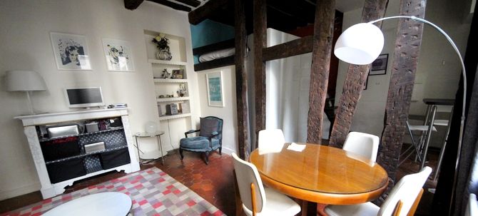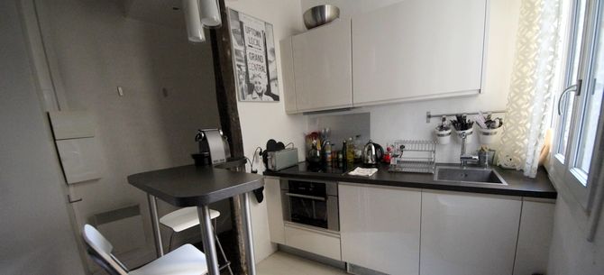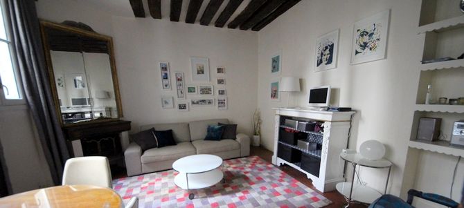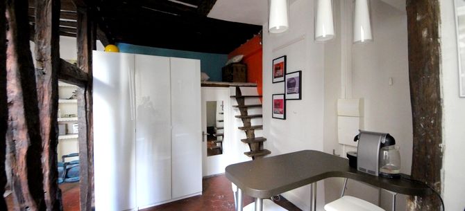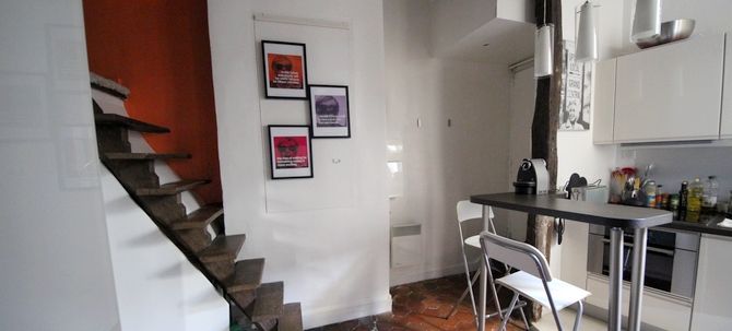 This apartment is as welcoming, picturesque and charming as the area it’s located in! Follow the guide and cross the quiet courtyard, then climb to the 1st floor and enter the adorable apartment! Recently renovated, the apartment has retained its authentic touch with its tiles and beautiful exposed beams.