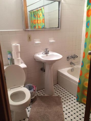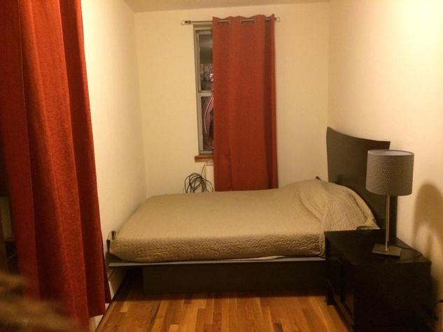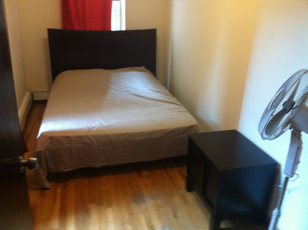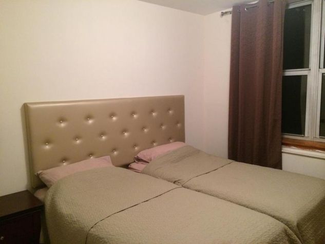 Fully furnished three bedroom apartment. The apartment has a large, a medium and a small bedroom. There is a queen size bed and a dresser in each of them. The large bedroom has an additional sleeper sofa bed and a flat-screen TV. The living room/dining area incorporates table with chairs, sofa and an armchair. The kitchen is fully equipped with a full size refrigerator, gas stove, coffeemaker, toaster. There are pots, pans, cutlery for cooking.
