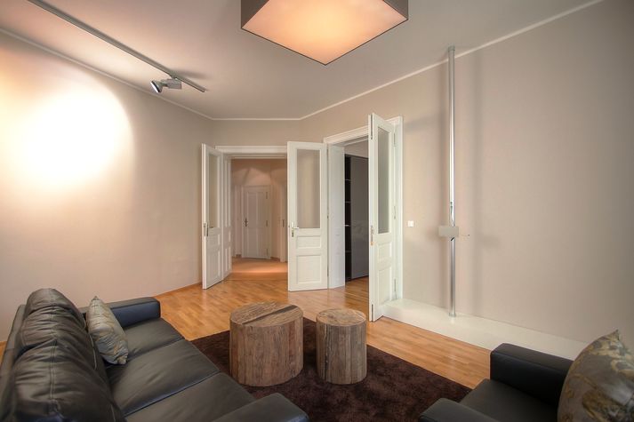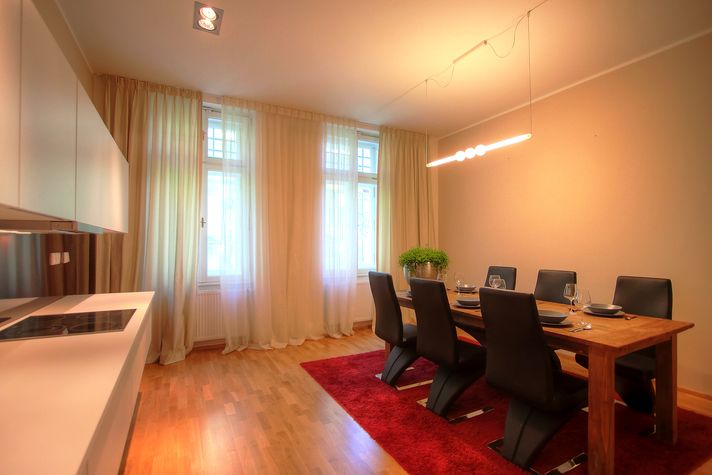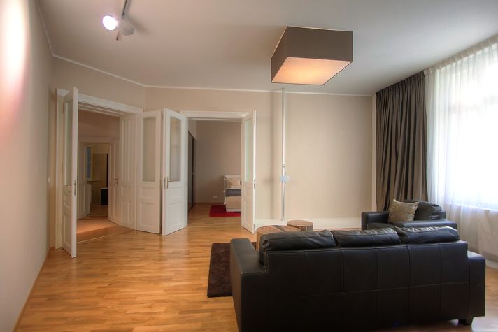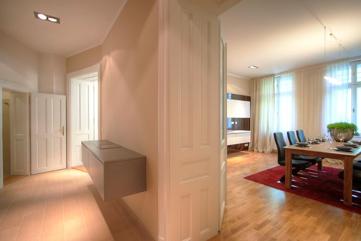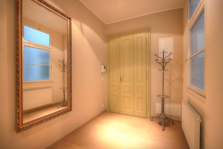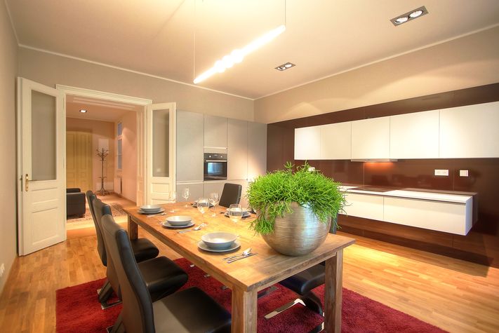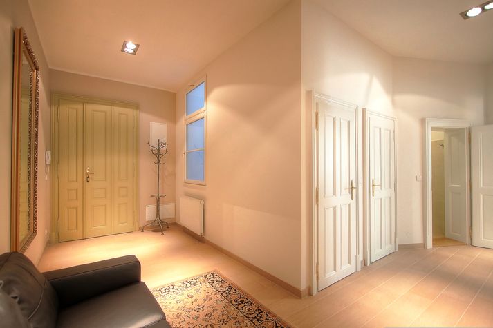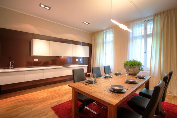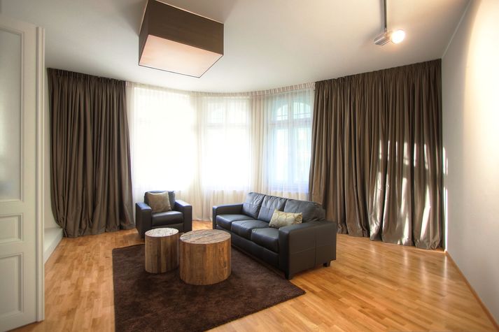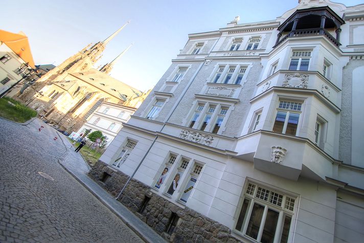 Bishop Exlusive is on the top of Brno apartments. Luxury simple facilities, a bright space, the wood, the leather and the natural materials underline the overall atmosphere of the apartment decorated in warm colors. The toilet is separated from the bathroom with a large bathtub. The house is very close to the famous square Zelný trh, from the room windows is a magnificent view of the Cathedral of st. Peter and Pavel. The apartment is fully equipped with an appliances and an utensils. The house was build in 1909 Art Nouveau style and is well-known with the names, Hugo and Pavel Haas, who lived here. Hugo became famous as the actor and the director, Paul got known as the composer. Bishop's residence, where the apartment is located, is closely linked with Brno cultural life, it hosts an exhibitions and an expositions. If you plan visit Brno and see all his beauties Bishop Exlusive Apartment had the door opened for you!