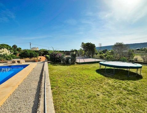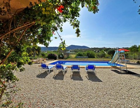 4-room house 115 m2. Practical furnishings: living room with Scandinavian wood stove and satellite TV (flat screen). Exit to the garden. 1 room with 1 double bed. Exit to the loggia. Kitchen (oven, dishwasher, microwave, freezer, electric coffee machine) with dining table. Shower/bidet/WC. Upper floor: 1 double bedroom with air conditioning. 1 room with 2 beds. Bath/bidet/WC. Barbecue, deck chairs (6). Panoramic view of the countryside. Facilities: washing machine. Internet (WiFi, free). Reserved parking (2 cars). AT441106A Included: Air-conditioning, Power costs, Final cleaning, Laundry (initial supply of bed linen and towels), Wireless internet access (WIFI) Available on site with supplement: Buggy, Cot, Highchair, Extra bed Mandatory extra services on site: Laundry (initial supply of bed linen and towels) 13.0 EUR per person\n\nVilla "Corral del Marques", 2 storeys, semi-detached. In the district of Canselades, in a quiet, sunny position, 4 km from the sea. For shared use: garden 3'300 m2. Private: garden with wildlife garden and flowers, swimming pool (5 x 10 m, 01.01.-31.12.). Tennis (1 x hard court). In the house: central heating system. Supermarket 2 km, restaurant 1 km, sandy beach "Arenal" 4 km. Please note: the owner lives on the same property.