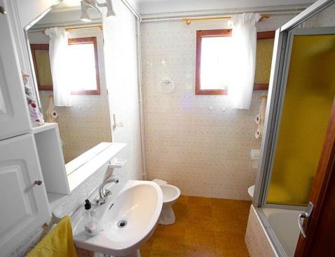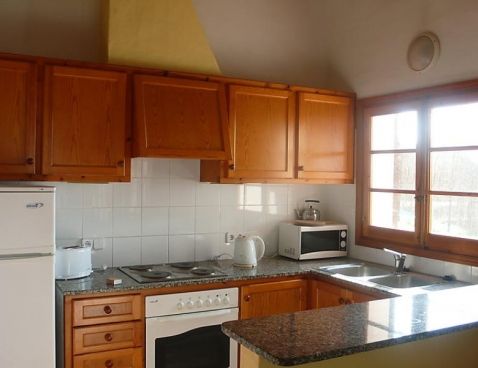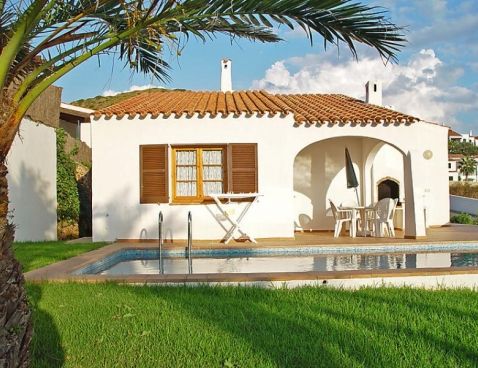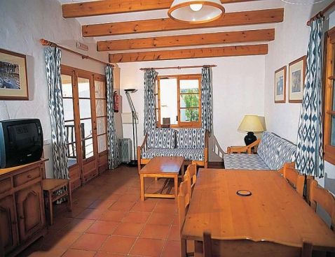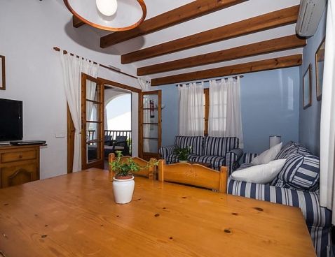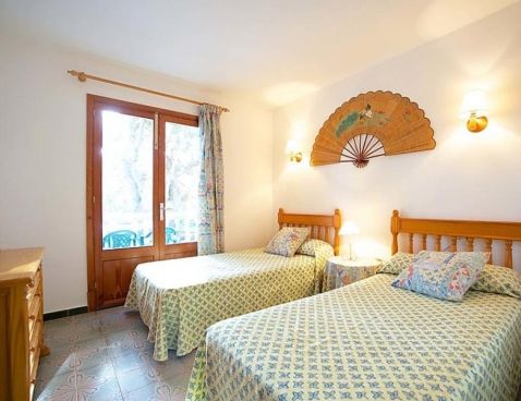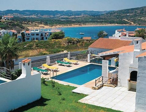 4-room house 100 m2. Comfortable furnishings: living/dining room with satellite TV. 1 room with 1 french bed. 2 rooms, each room with 2 beds. Open kitchen (4 hot plates, oven, microwave) with bar. Bath/WC. Heating, air-conditioning. Terrace. Terrace furniture. View of the sea. Facilities: washing machine, safe (extra), iron. Internet (WiFi). Included: Cot (up to 2 years), Final cleaning, 1 Cot (up to 2 years), Laundry (initial supply of bed linen and towels), Highchair Available on site with supplement: Extra bed 15.0EUR per day \n\nHoliday development "Villas Playas de Fornells V3D AC 01". Outside the resort, 3 km from the centre of Fornells, 30 m from the sea. Private: garden with lawn, swimming pool (8 x 4 m, 01.01.-31.12.). Barbecue. Linen change weekly. Towel change 2 times per week. Room cleaning 2 times per week (included). Parking. Supermarket, restaurant 300 m, bar 50 m, bus stop 20 m, sandy beach "Cala Tirant" 400 m. The first cot and first highchair are free of charge. Second cot: 5.25 euros / to be paid on spot.