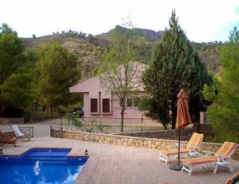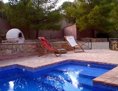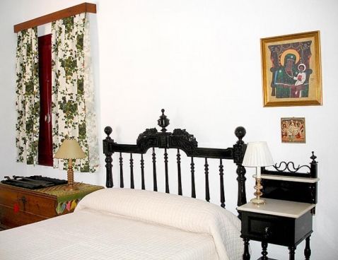"Casa de la Cruz", 5-room house 145 m2. Antique furnishings: living/dining room with open-hearth fireplace, satellite TV, radio and DVD. Exit to the swimming pool. 2 rooms, each room with 2 french beds. 1 room with 1 bed (105 cm). 1 room with 2 beds. Kitchen (4 hot plates, oven, dishwasher, microwave, freezer) with dining table. Bath/bidet/WC, sep. WC. Patio. Deck chairs (4). View of the mountains.