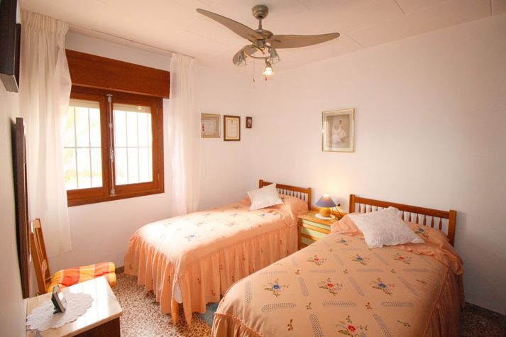 The villa in Calpe / Calp has 2 bedrooms and has capacity for 5 people. The villa is cozy, is fully equiped, and has 100 m². It has views to the sea and to the garden. The house is situated in a quiet neighborhood in a residential complex. The accommodation is equipped with the following things: terrace, iron, internet, private swimming pool, 2 fans, 1 tv, satellite (Languages: Spanish, English, German, Dutch, French). In the butane gas independent kitchen, refrigerator, microwave, oven, freezer, washing machine, dishwasher, dishes/cutlery, kitchen utensils, coffee machine are provided.