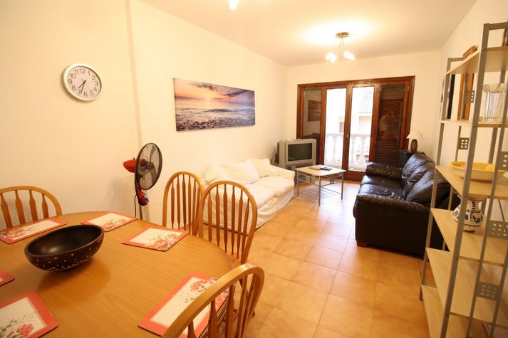 The apartment in Calpe / Calp has 2 bedrooms and has capacity for 4 people. The apartment is cozy, is fully equiped, and has 80 m². It has views to the sea. The house is situated in a quiet neighborhood next to the sea. The accommodation is equipped with the following things: terrace, iron, communal swimming pool, open-air car parking in the same building, 1 tv, satellite (Languages: Spanish, English, German, Dutch, French). In the butane gas independent kitchen, refrigerator, microwave, oven, freezer, washing machine, dishes/cutlery, kitchen utensils, coffee machine are provided.