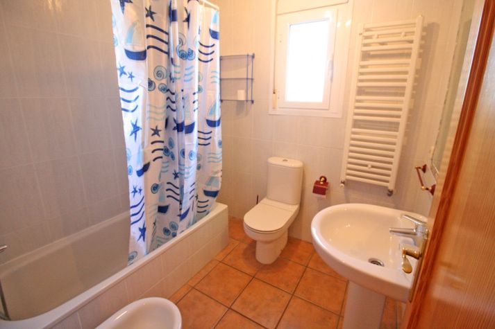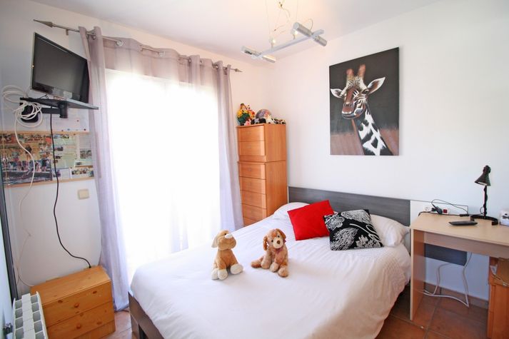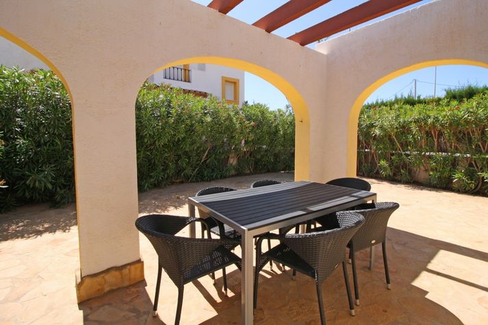 The bungalow in Calpe / Calp has 2 bedrooms and has capacity for 5 people. The bungalow is comfortable, is newly constructed, and has 120 m². The house is situated in a quiet neighborhood next to the sea. The accommodation is equipped with the following things: garden furniture, fence parcel, terrace, iron, communal+infantile swimming pool, open-air car parking in the same building, tv, satellite (Languages: Spanish, English, German, Dutch, French). In the butane gas independent kitchen, refrigerator, microwave, oven, freezer, washing machine, dishes/cutlery, kitchen utensils are provided.