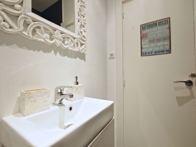 For your convenience, the apartment is equipped with amenities like Bed Linen & Towels, Kitchen, Wireless Internet, Internet, TV, Air Conditioning, Washing Machine, Free Cleaning, Elevator, and Balcony