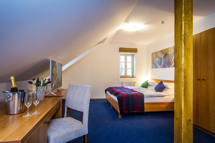 Parking is free of charge but it should be ordered in advance due to the small parking capacity and needed permission for the entrance. Moreover, by the connection of two rooms on the second floor there it a possibility to create comfortable four-bed suite.