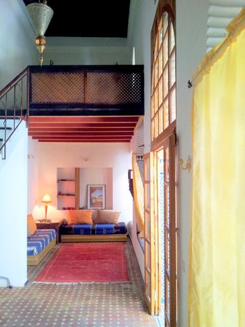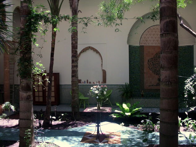Being a lover of plants and birds and wanting to respect the word “riad” which means garden in Arabic, I also filled the courtyard with plants and planted 4 enormous palm trees inspiring myself from the desert oasis and English gardening books.