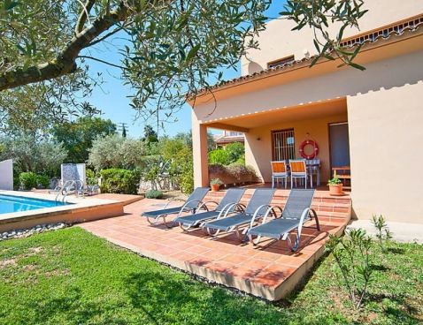 Mandatory extra services on site: Final cleaning 22.0 EUR per person, Laundry (initial supply of bed linen and towels) 13.0 EUR per person\n\nLarge, beautiful house "Tarraula 65". In the district of Lluca, in a quiet position, 5 km from the sea. Private: garden 1'600 m2 (fenced) with lawn, wildlife garden and trees, swimming pool with privacy (4 x 10 m, 01.01.-31.12.). Outdoor shower, terrace. Supermarket 4 km, restaurant 700 m, sandy beach "Arenal" 5 km. Golf course 700 m.