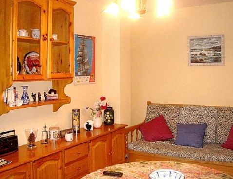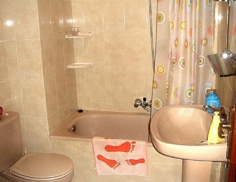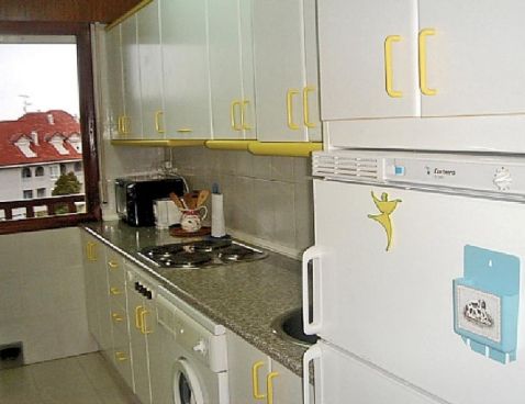 3-room apartment 50 m2 on 2nd floor, practical furnishings: living/dining room with TV and radio. Exit to the balcony. 1 room with 2 beds. 1 room, without wardrobe with 1 x 2 bunk beds. Kitchen (4 hot plates, microwave, freezer). Bath/bidet/WC. Terrace 6 m2. Terrace furniture. Side view of the sea. Facilities: washing machine. Garage. 2 bars on the ground floor. Included: Final cleaning, Laundry (initial supply of bed linen and towels) \n\nApartment block "Edificioo La Costa", 3 storeys. In the resort 200 m from the centre of Noja, 80 m from the sea. Communal covered parking. Shop, grocery, restaurant 50 m, sandy beach 80 m.