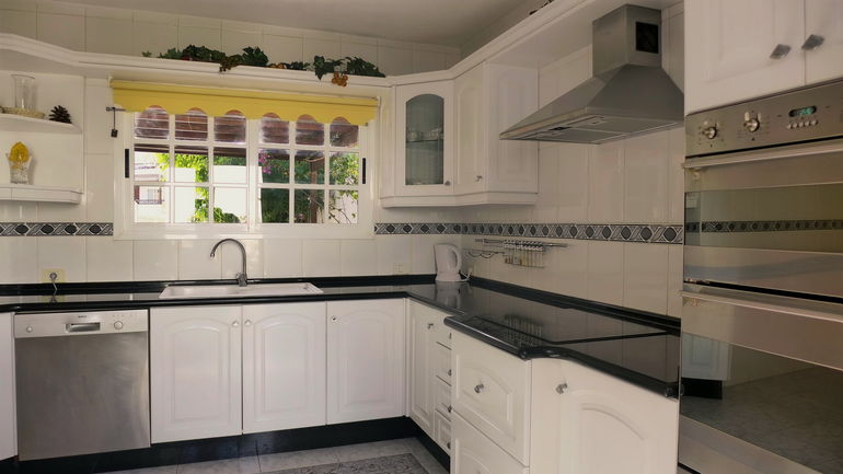This spacious villa can comfortably accommodate up to eight people. Four bedrooms, two bathrooms. A huge green area with seating and sunbathing. Private heated pool, two floors of elegant interiors. Garage parking for two cars.The kitchen is equipped with modern appliances: electric stove, oven, microwave, range hood, refrigerator, dishwasher, washing machine. For your entertainment television and wireless internet. BBQ by the pool. Just a hundred meters away, you can swim in the ocean, and if you walk 400 meters, then you will be available to large and nemnogolyudny beach.