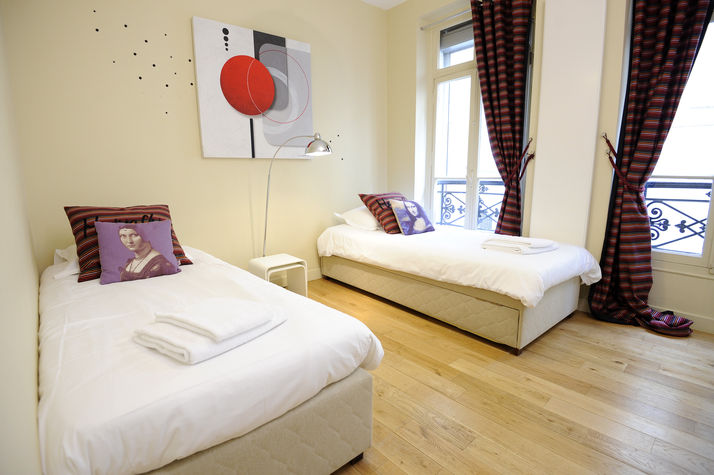 BEDROOM 1 15 m2 with a window facing a quiet street 1 double bed BEDROOM 2 15 m2 with a window facing a quiet street 2 single beds