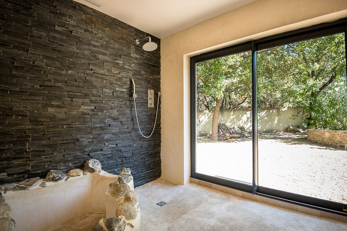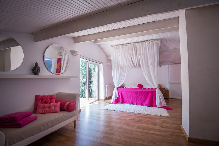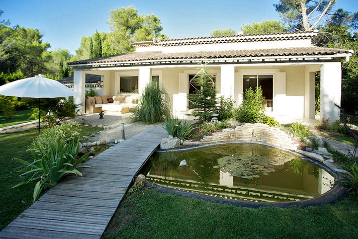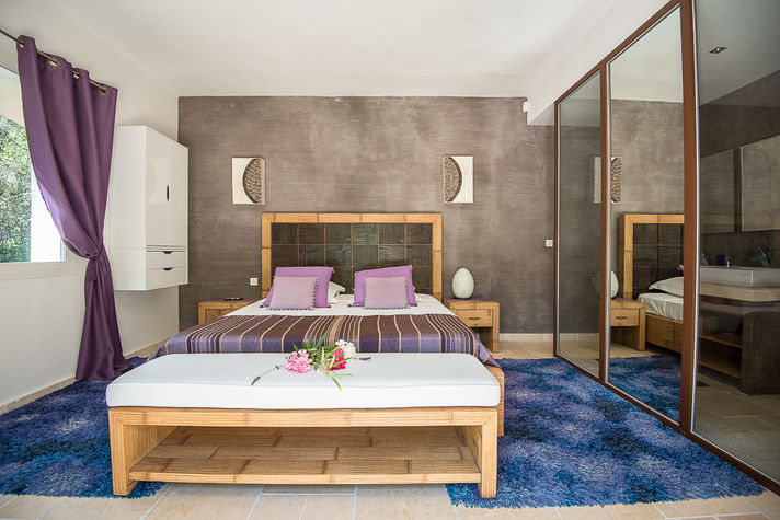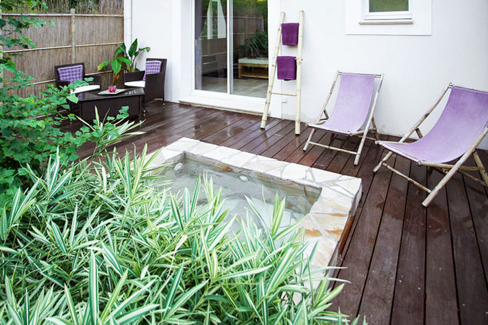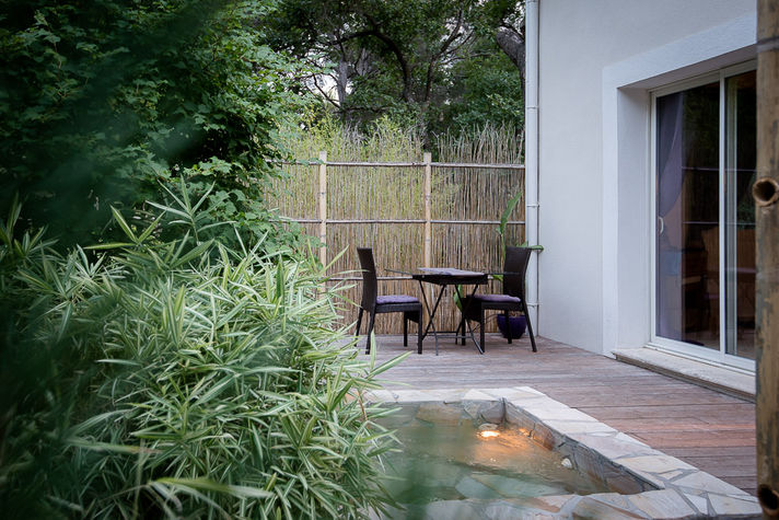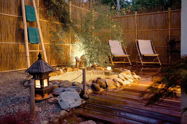Dubbed Les Bains du Soleil Levant, this magnificent holiday home was designed following the principals of Feng Shui. The dramatic Japanese-styled villa was completely renovated in 2011 using earth-friendly natural materials and features access to hot outdoor baths, a spa, a swimming pool, fountains, Japanese gardens and an expansive terrace. More luxury awaits you inside, with central heating and air conditioning ensuring year-round comfort. Exquisite designer furnishings combine with amenities such as a flat-screen satellite TV with a DVD/Blu-ray player, a washing machine and dryer and WiFi Internet. The state-of-the-art kitchen features everything you need to create feasts to savour in the expansive dining area, which seats 14, or on the terrace as you take in the surrounding nature. There are seven beautiful bedrooms. Each has a double bed, one sporting an added single bed and another with a convertible sofa. There is also a convertible sofa in the living room and 2 baby cots available on request. Particular care has been taken in the choice of bedding for optimal muscle relaxation, some rooms with memory-foam mattresses and luxurious, 100% organic bedding. Three of the rooms boast air conditioning and a full HD and TNT satellite TV with more than 300 channels and 40 radio channels, safes and hair dryers. The bedrooms include a 22sqm master suite with a reading corner and a fully-renovated bathroom with a freestanding bath, a large walk-in shower and a separate toilet. Another bedroom is located in a 40sqm annex, also containing a Japanese-style bathroom with a heart-shaped bath, a separate toilet, a games room and a living room. In total there are five ensuite bathrooms with a bathtub and WC, and the stunning shared bathroom boasts a bathtub, a spacious walk-in shower, twin sinks and a WC. End cleaning, luxury linen, towels and Internet are included. There is private parking on site, smoking is permitted outside only and pets are welcome on request.