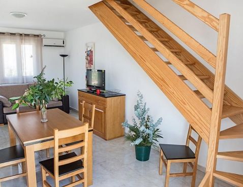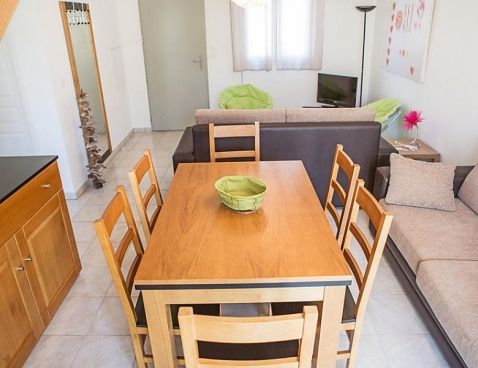 2-room house 41 m2 on 2 levels, comfortable furnishings: living/dining room with 1 double sofabed and TV (flat screen). Kitchen (4 hot plates, dishwasher, microwave). Bath/WC. Air-conditioning. Upper floor: 1 room with 2 beds (90 cm). Terrace, garden. Terrace furniture. 1 pet/ dog allowed. Included: Final cleaning, Parking Available on site with supplement: Bed linen (initial supply) 18.0EUR per person, Pet 49.0EUR per week, Wireless internet access (WIFI) 19.0EUR per week, Towels (initial supply) 10.0EUR per person, Wireless internet access (WIFI) 25.0EUR per week Mandatory extra services on site: Local tax 0.75EUR per person/day \n\nCervione 6 km from Moriani: Residence "A NUCIOLA". 39 houses in the residence. On the outskirts, 200 m from the sea, 200 m from the beach.