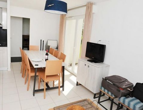 4-room terraced house 58 m2 on 2 levels. Living/dining room with 1 double sofabed (140 cm), TV (flat screen). 1 room with 1 double bed (140 cm). Kitchen (dishwasher, 4 ceramic glass hob hotplates, microwave, electric coffee machine). Shower, sep. WC. Upper floor: 2 rooms, each room with 2 beds (90 cm). Bathroom. Small terrace. Terrace furniture. Facilities: children's high chair (extra). Reserved parking. 1 pet/ dog allowed.