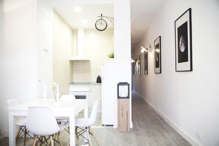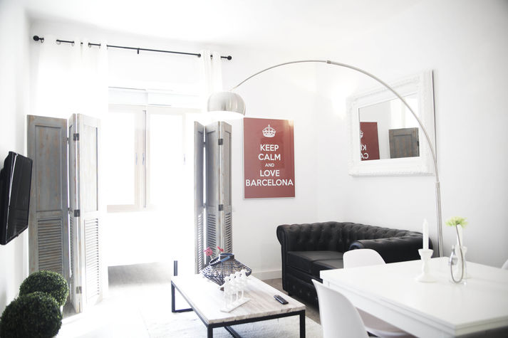 Beautiful designer loft-apartment up to 4 people with a great value for money, located in the city center. Very well connected with the most important tourist spots in Barcelona, as well as Plaza España (trade fairs/shows centers) . It is quite cozy and bright, recently renovated, fully furnished and equipped . Aside from comfortable, the apartment is decorated with several desing furniture and quality details. It also offers free internet access (Wi -Fi). Perfect for couples , families or executives on business trip. It has a bedroom with balcony and two single beds and another one with a double bed integrated into the living room, but isolated from it with delicate curtains providing the room with intimacy. The living room is spacious and cozy, with a comfortable sofa, a coffee table and a dining table for 4 people, as well as a 40 HD TV. " The kitchen, open to the living room , is fully equipped with washing machine, oven, refrigerator, microwave, Nespresso machine and all the kitchen utensils you need to feel at home. It also offers iron and ironing board. Nice and cozy bathroom with shower and hairdryer. All this makes spending a few days here , whether for relaxation or work, an affordable luxury experience that allows you to enjoy Barcelona with all the comfort.