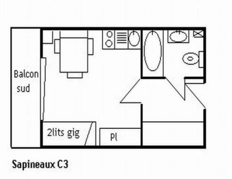 LES SAPINEAUX N° C3 - TYPE A - 18 m2 - Classification 1* Studio 2 people, 2nd floor, south balcony, ski locker. - 1 entrance - 1 living-room 1 living-room: sofabed (1x2p) - 1 kitchenette 2 ceramic hobs, combi oven/micro-waves, refrigerator, dishwasher - 1 bathroom (small bath), wc -Television + DVD player \n\nSituation : situated at the altitude 1600, next to the "Morel" chairlift - 50m from the "Morel" chair-lift - 300m from the shops and the restaurants - 2km from the centre Residence : no lift