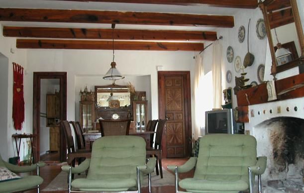 The first lounge is connected to another larger lounge (54m2) with a grand fireplace. From this room, there is access to the kitchen (29m2) and another bathroom. At the back of the kitchen, there are two doors leading outside where there is another area of three bedrooms and two bathrooms with a separate entrance.