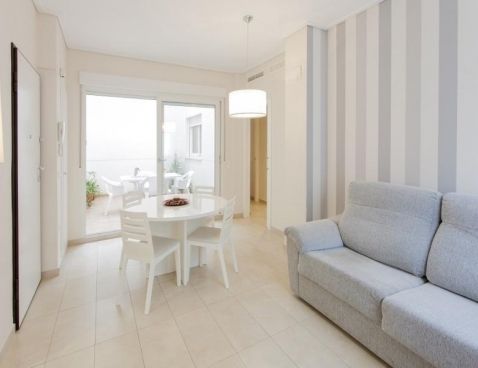 The apartment in Gandía has 2 bedrooms and has capacity for 6 people. The apartment is nice, is newly constructed, and has 70 m². The accommodation is equipped with the following things: garden furniture, terrace, iron, internet, air conditioning (heat/cold), air conditioning, tv. In the vitroceramic independent kitchen, refrigerator, microwave, oven, freezer, washing machine, dishwasher, dishes/cutlery, kitchen utensils, coffee machine, toaster, juicer are provided. Included services: - Heating - Air-conditionning - Pet - Bedsheets - Towels \n\n