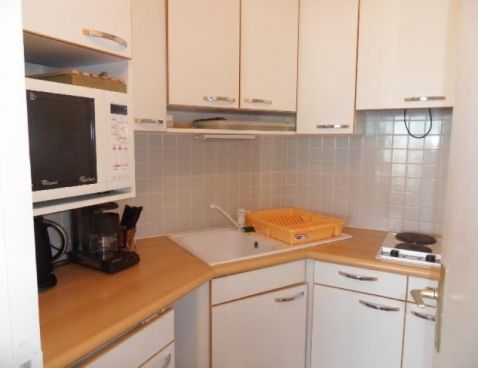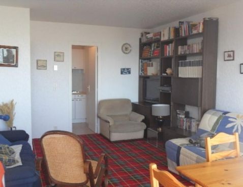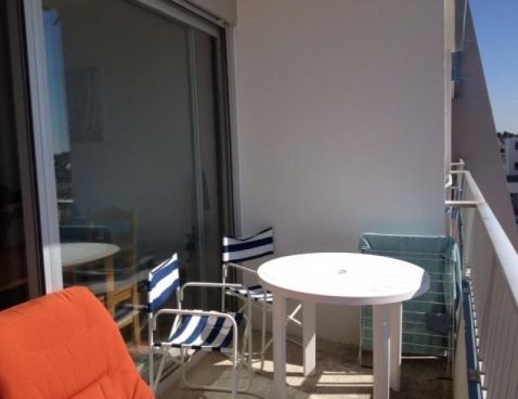 Apartment located on No 1 floor, without elevator, in complex, simply furnished. Living room giving onto terrace with single sofa bed. Kitchenette with hotplates. 1 bedroom with double bed.\n\nSmall building in quiet neighbourhood. By the seaside. Car recommended. Public parking. From 27th September to June, electricity to pay extra.