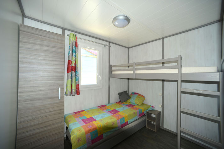 The cottages 6 persons, with an area surface of 51m ², is fully furnished and air conditioned. For your holiday, you have a large living room, 3 bedrooms: one with a double bed, the second with two bunk beds and a trundle bed; and third one with two single beds; a bathroom and separate toilet.