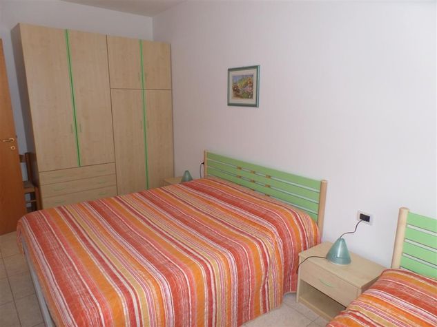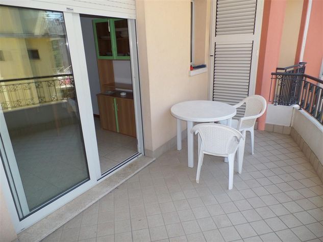 Modern two-room apartment with air conditioning providing accomodation for 5 persons Living-room with kitchenette and double sofa bed 1 bedroom with double bed and single bed Bathroom with shower cabine Balcony Air conditioning, microwave oven, safe. Private parking in Garage 300 m from the beach