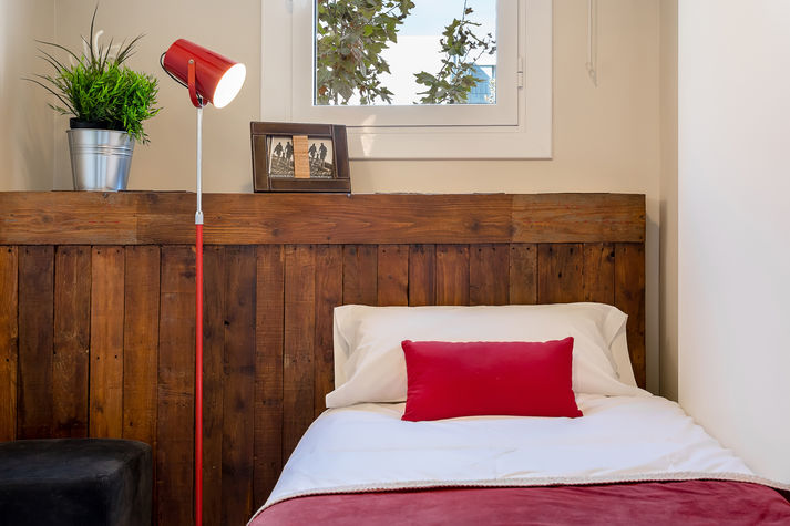 THIS IS A BUSINESS READY APARTMENT FOR CORPORATE RENTING. THE RENT IS AVAILABLE FOR A MINIMUM OF 30 NIGHTS. Newly reformed building composed by suites and cozy apartments all decorated with a vintage style. The Vintage Suite Principal is located on the main floor (2nd) of the building and comes with a private balcony. It has been totally reformed on summer 2014 maintaining some of the original bricks wall and typical catalan ceiling. The apartment has been furnished with lovely vintage design and with all the latest technologies (Wifi, AiCO, TV Sat, Security Access Control) The Vintage Suite Principal is located in a trendy area of 22@ just few minutes from the Rambla de Poblenou, 10 minutes from the beach or to the main shopping mall (Glories). The Old Town is just located at 1 Metro stop or 15 minutes walk. The Vintage Suite Principal comes with all amenities you might need such as: Bed-linen, Towels, Free Wifi, AiCo, Fully equipped kitchen, Nespresso Coffee Machine, LCD TV, TV Sat, Bath amenities, Welcome Basket. Each suite has been decorated with vintage design furniture and is composed by : 1x Double Bedroom with double bed and closet 1x Second sleeping area with the sofa-bed separated by sliding doors. 1x Double sofa bed for for 2 extra people or Kids 1x Living area with fully equipped kitchen 1x Bathroom with shower, towels and amenities 1x Balcony with outdoor coffee table. Very well connected with a Bus Station at 30mts or a Subway at 100 mts. RENTAL MODE. Self-Catering Apartment with: on-site check In from 3PM, payment by cash/credit card, 24h Emergency Support, End of Stay Cleaning, Welcome Pack, Cleaning pack, Towels, Bed-Linen, Bath Amenities, CheckOut at 10AM, on site Office (10AM-7PM) . OPTIONAL SERVICES available on request: Airport transfer, Daily cleaning, City Tours, Concierge services. NOTE: - Barcelona City Tourist Tax, which is 0.72 EUR per person per night, not included. - SECURITY DEPOSIT: Only taken by credit card pre-authorization at the checkin as guarantee against damages. - Authorization Number: HUTB-012606 *** Room Fees *** Booking fees: EUR 10.00 Occupancy tax: EUR 0.72/night/guest