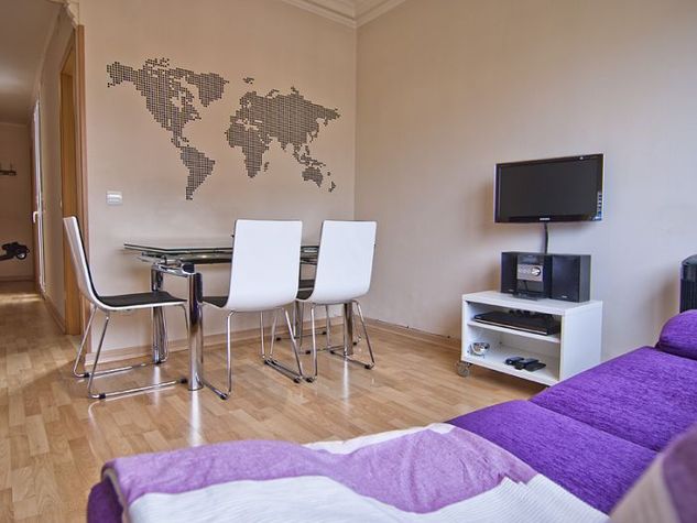 This 3 bedroom apartment in the dynamic neighborhood of El Raval, Barcelona sleeps 4 guests. The 55m2 apartment has 1 double beds, 2 single beds, and 1 bathrooms Enjoy fast internet access with complimentary WiFi. For your convenience, the apartment is equipped with amenities like Bed Linen & Towels, Kitchen, Wireless Internet, Internet, TV, Air Conditioning, Washing Machine, Elevator, and Balcony € 200 security deposit will be collected upon check-in and returned upon check-out. Check in: 14:00 Check out: 11:00 Please inform the host your estimated arrival time to ensure a smooth check-in process. Pets are not allowed in the apartment Smoking is not allowed in the apartment